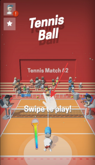 1、在初始界面,按照【Swipe to play!】提示,滑動屏幕發(fā)球,開啟網(wǎng)球?qū)?zhàn)。