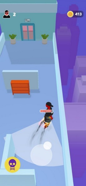 1、基礎(chǔ)潛行操作,通過虛擬搖桿控制角色移動。長按屏幕可觸發(fā)貼墻隱藏,滑動執(zhí)行翻滾等躲避動作。