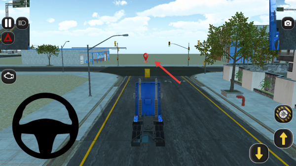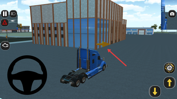 3、操控卡車,按黃色箭頭指引,駛?cè)虢ㄖ飬^(qū)域完成任務(wù)。