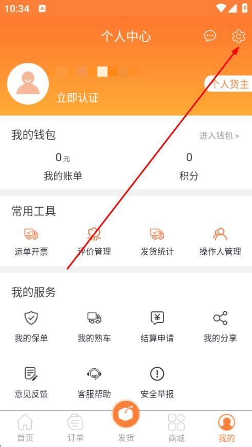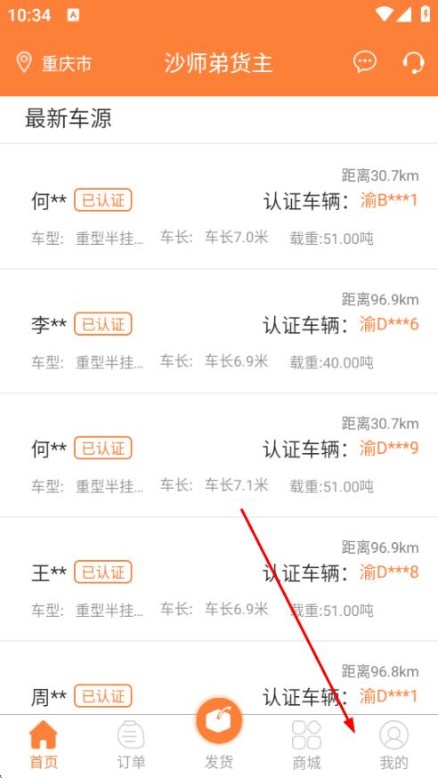 1、打開沙師弟貨主APP,點擊底部導航欄中的我的進入個人中心。