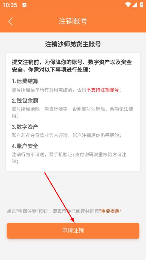 5、在注銷賬號提示頁面,閱讀相關(guān)提示后,點擊申請注銷。