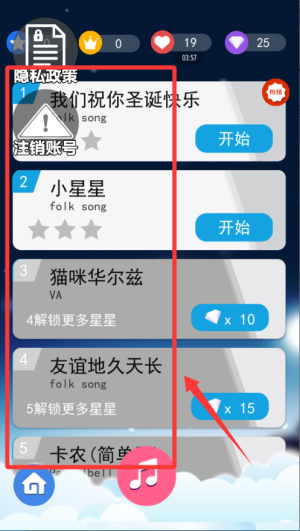 3、完成挑戰(zhàn)后記得領(lǐng)取獎(jiǎng)勵(lì)道具,用來(lái)解鎖新模式和新歌曲,多嘗試不同風(fēng)格的曲目。