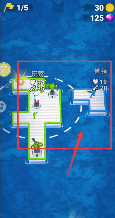 4、多維度的戰(zhàn)術(shù)策略考驗全局思維,需要考慮木筏擴建規(guī)劃、兵力部署調(diào)整和進攻策略制定,直接影響戰(zhàn)局走向。