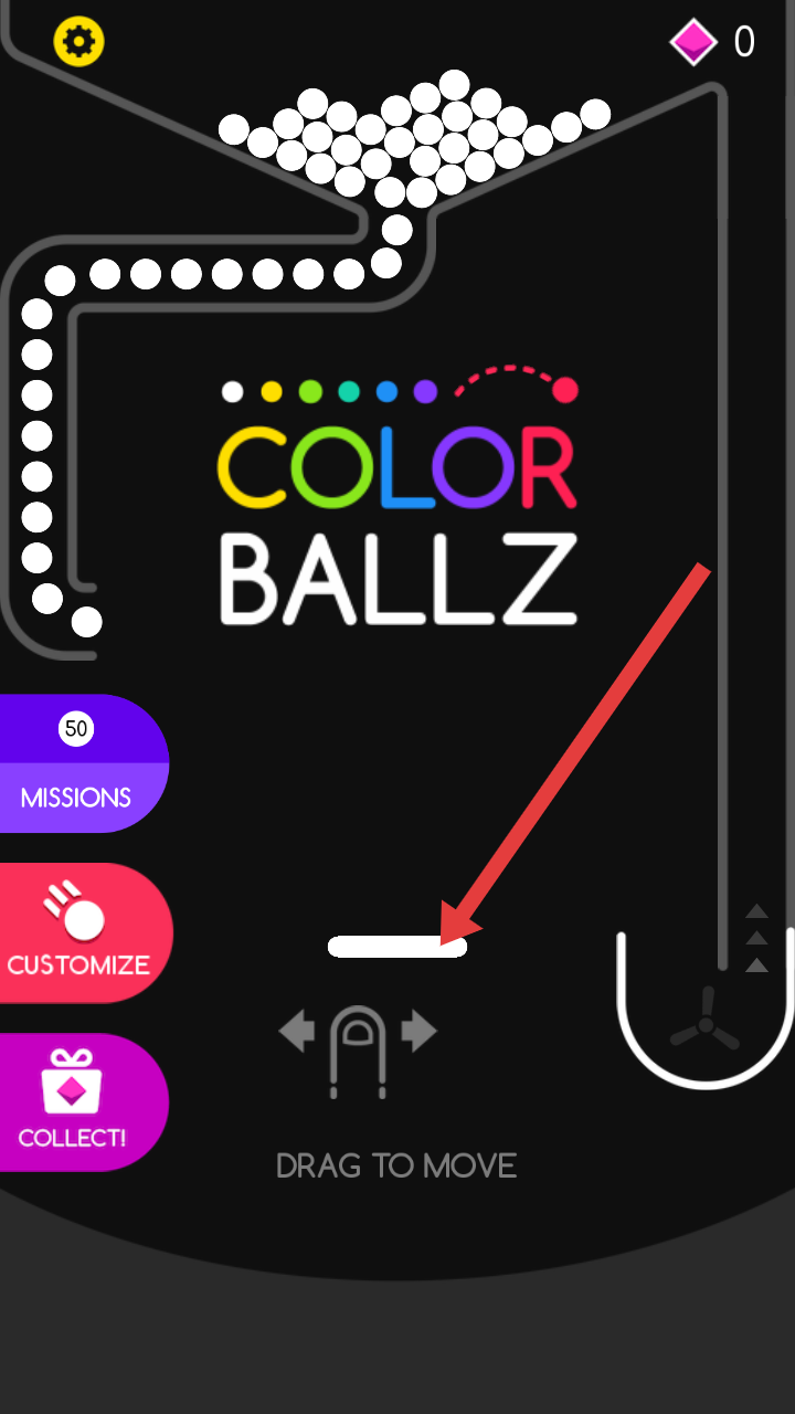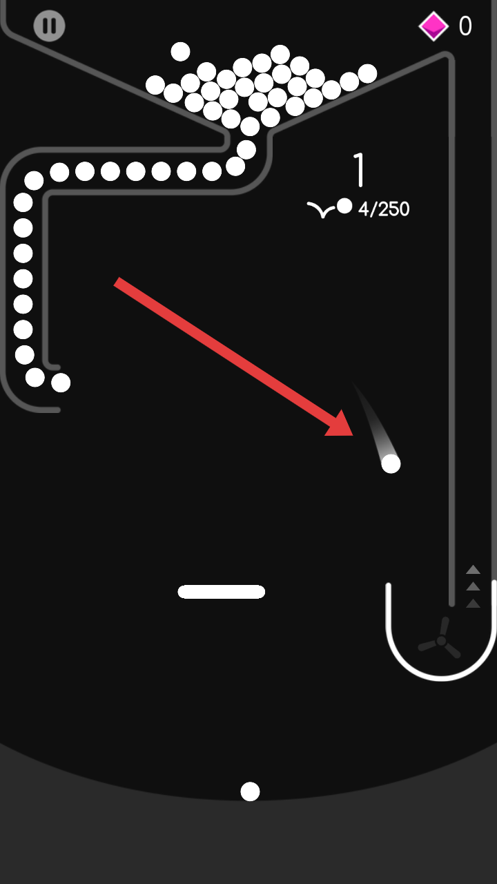 2、游戲開始后,白色小球沿軌道下落,操控下方擋板,引導小球滾動,初步積累分數。