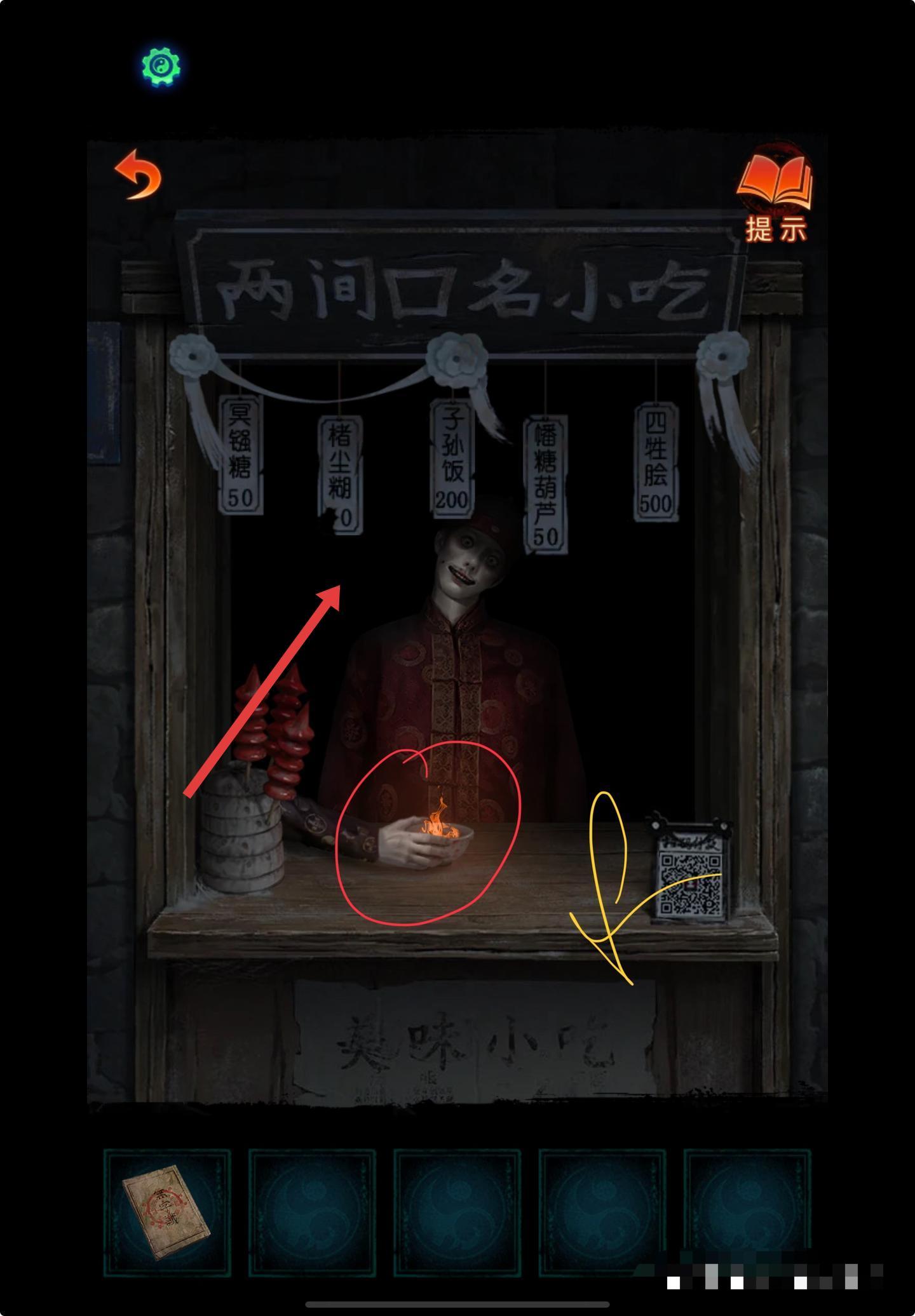 2、在小吃攤與角色互動,根據(jù)提示操作,獲取物品,推進解謎。