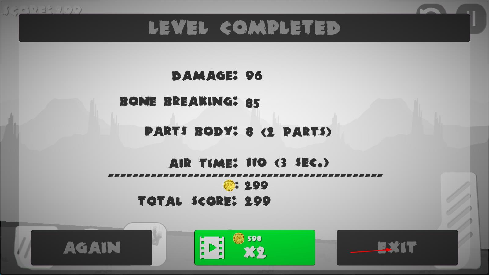 3、到達(dá)終點(diǎn)后,系統(tǒng)會(huì)根據(jù)撞擊表現(xiàn)給予評(píng)分和獎(jiǎng)勵(lì),可用來(lái)解鎖更多車(chē)輛、皮膚及道具。