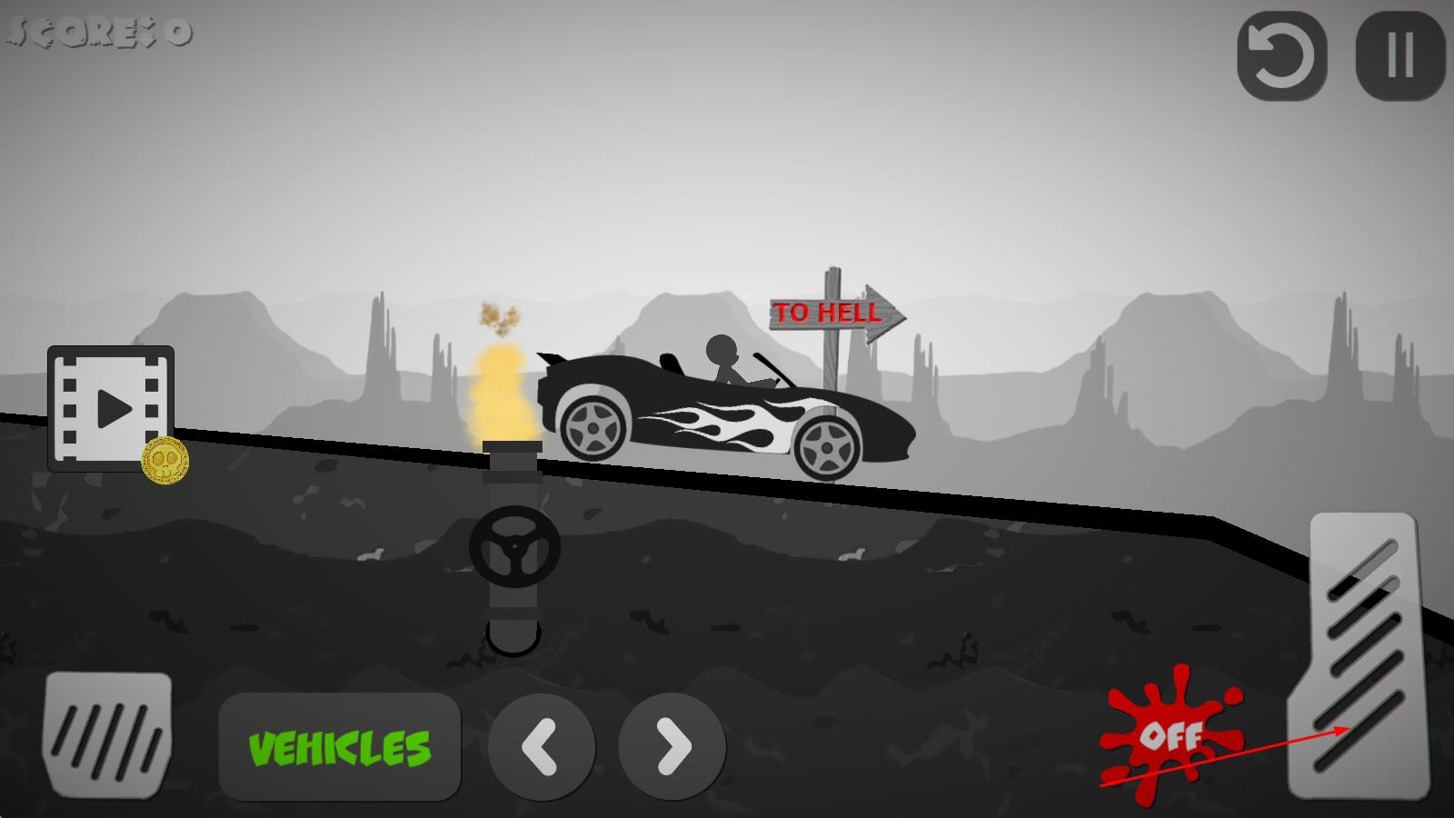 2、游戲進(jìn)行中,用剎車(chē)和油門(mén)控制車(chē)輛方向與速度,精準(zhǔn)撞擊火柴人,車(chē)輛翻轉(zhuǎn)時(shí)點(diǎn)擊重置按鈕繼續(xù)游戲。