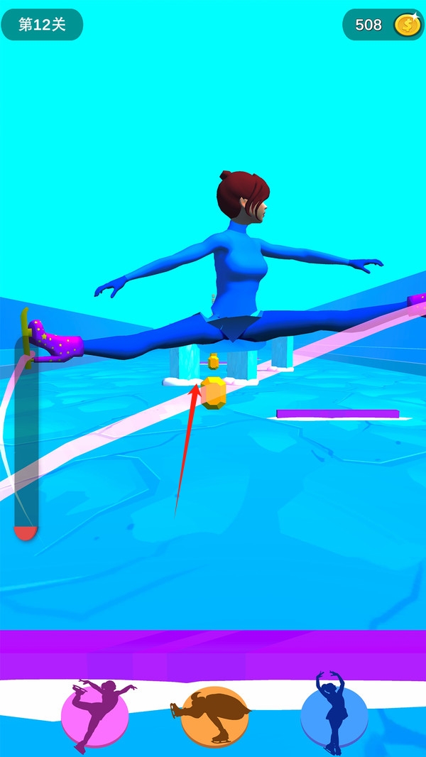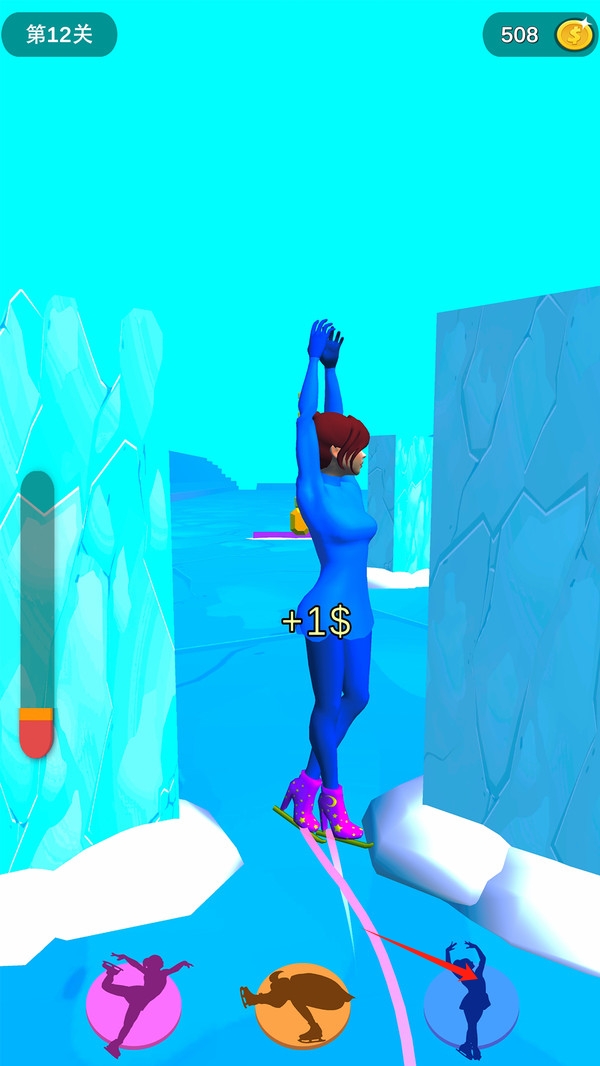 1、點擊跳躍,通過合理使用技能與道具提升速度,利用連續(xù)成功特技觸發(fā)"極限狀態(tài)",通過回放功能分析改進(jìn)滑冰技巧。