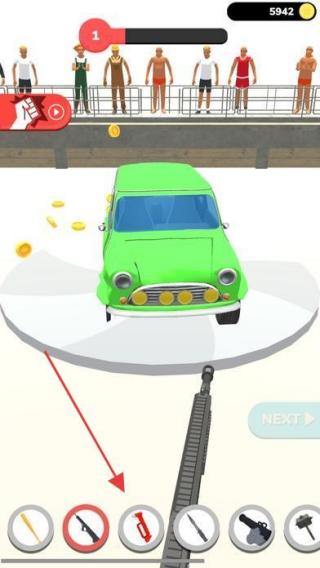 3、用界面武器(如槍、錘子)破壞障礙或互動(dòng),配合特技動(dòng)作,完成挑戰(zhàn)獲金幣升級(jí)車輛。