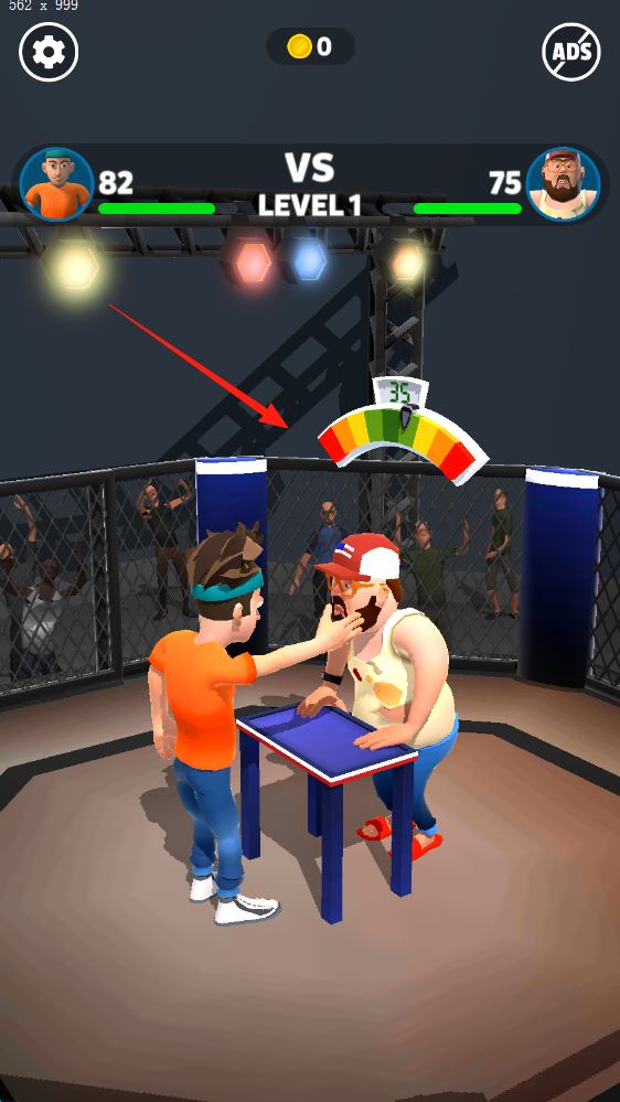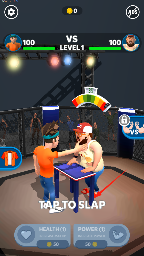 1、進(jìn)入對戰(zhàn),看準(zhǔn)時(shí)機(jī)點(diǎn)擊“TAP TO SLAP”扇對手,通過指針控制巴掌力量。