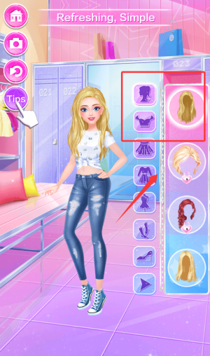 2、在裝扮界面自由選擇發(fā)型、服飾與配飾進行搭配,通過滑動屏幕查看不同角度的著裝效果。
