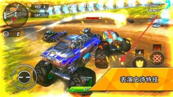 2、比賽中,看準(zhǔn)時(shí)機(jī)點(diǎn)“表演史詩特技”,借特技獲加速、干擾對(duì)手,提升競(jìng)速排名與生存力。