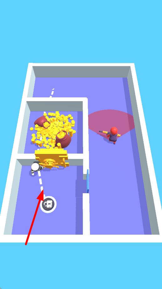 1、進(jìn)入局內(nèi)后滑動(dòng)屏幕操控火柴人移動(dòng),長(zhǎng)按屏幕進(jìn)入潛行姿態(tài),利用場(chǎng)景陰影躲避初始巡邏兵的視線(xiàn)。