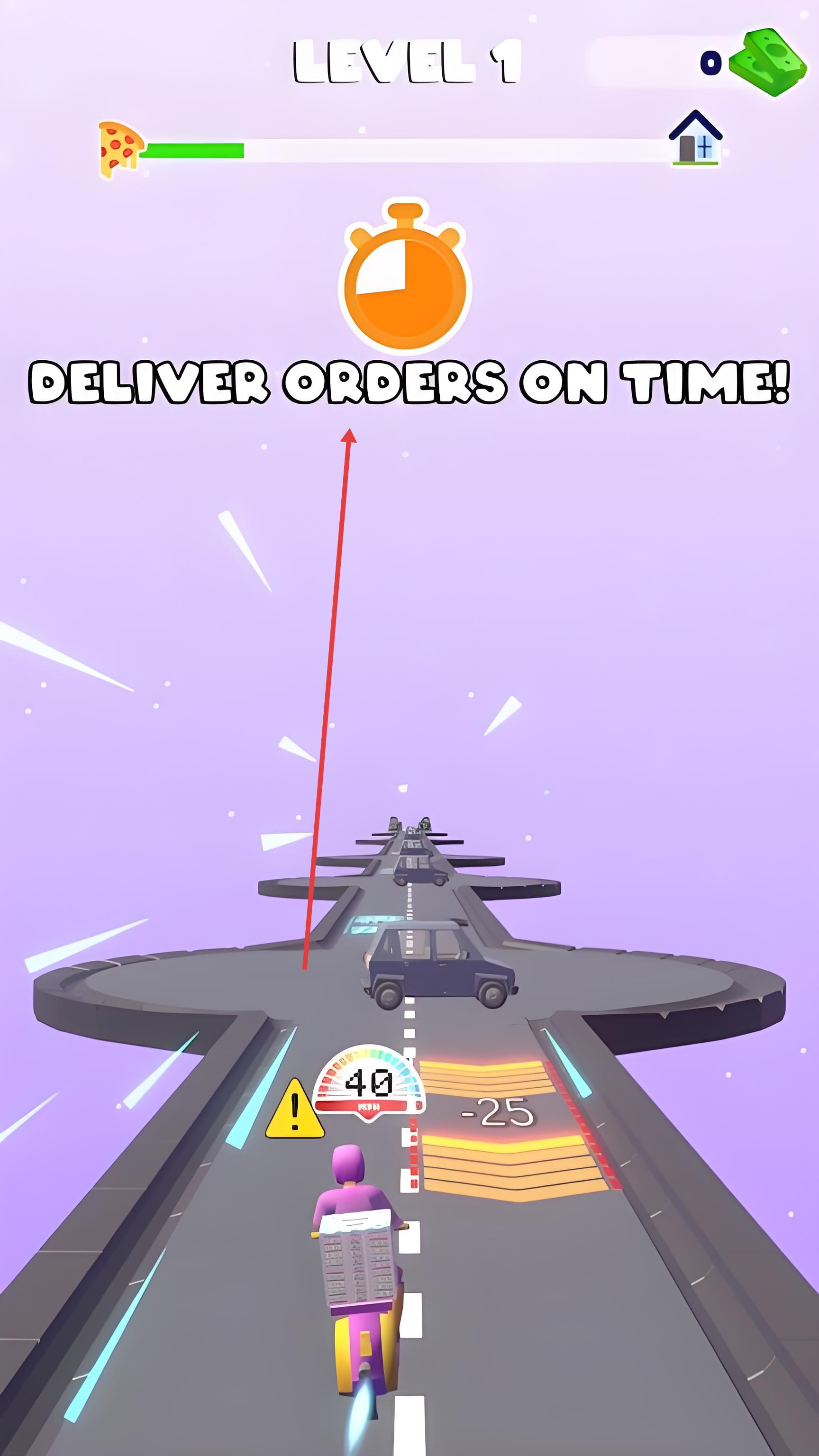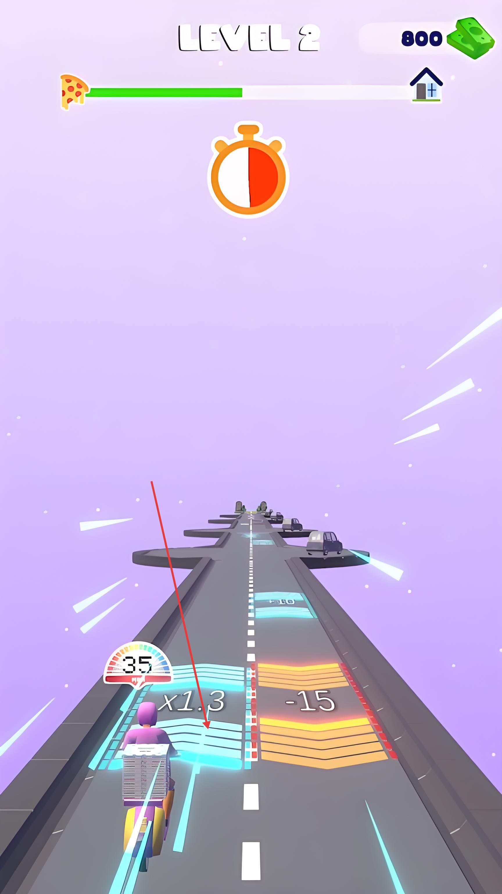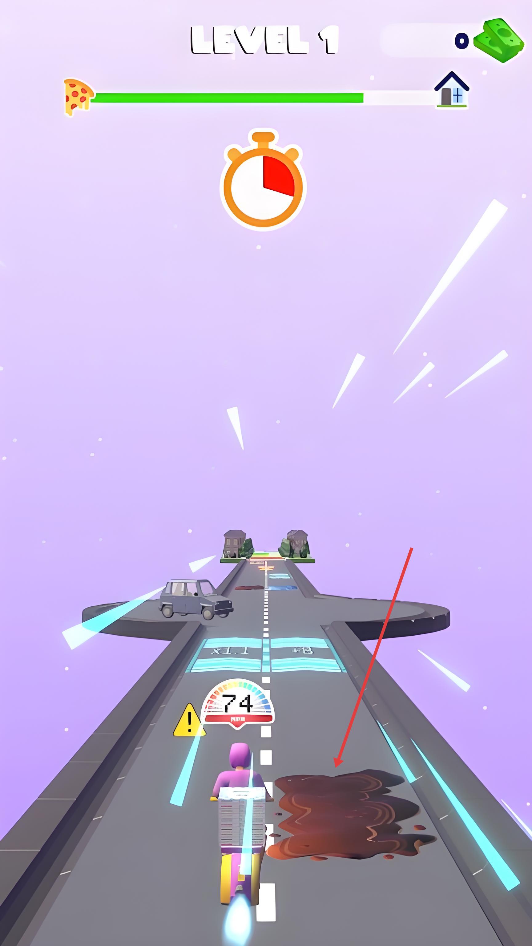 3、抵達終點前會觸發(fā)“精準交付”挑戰(zhàn),需在滑動條區(qū)域內(nèi)點擊屏幕完成餐品遞交,完美交付可獲得雙倍金幣獎勵,累計完成10單普通配送可解鎖“暴雨加急”等特殊關卡。