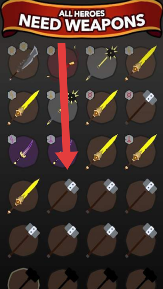 1、在武器展示界面,瀏覽各類武器,按箭頭方向滑動屏幕,查看更多武器,選擇心儀武器。