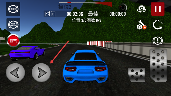 3、比賽時(shí),通過左側(cè)方向鍵操控藍(lán)色賽車,擋位2階段瞅準(zhǔn)時(shí)機(jī)超越紫色對(duì)手,必要時(shí)觸發(fā)【氮?dú)狻?,沖擊更優(yōu)名次與圈速。