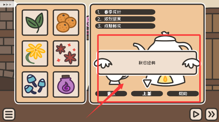 1、游戲初始時,玩家將扮演茶館主人,根據(jù)顧客需求挑選合適的茶葉進(jìn)行沖泡準(zhǔn)備。