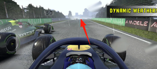 3、遇到動(dòng)態(tài)天氣(如霧天),沿【箭頭】指引,小心駕駛,避免碰撞,維持排名。