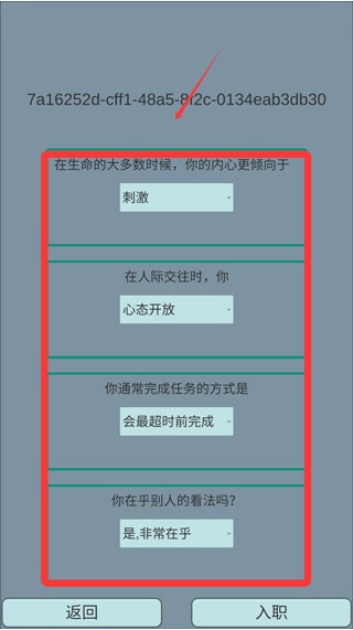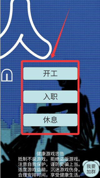 1、進(jìn)入游戲后點(diǎn)擊屏幕中任意一個(gè)按鍵開始游戲,新手建議點(diǎn)擊入職。
