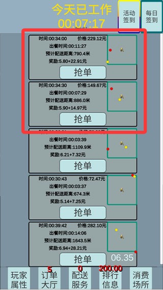 3、開始工作后我們需要搶單送外賣來賺錢。