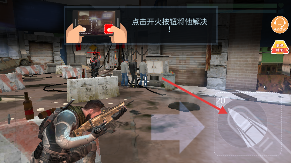 1、左手劃屏控制走位,右手點(diǎn)擊射擊,記得找掩體否則會(huì)變成篩子。