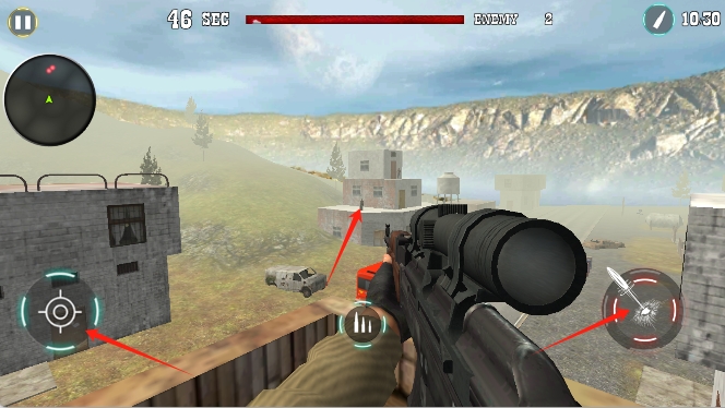 2、狙擊操作與技巧:通過虛擬搖桿移動與縮放瞄準(zhǔn)鏡,調(diào)整呼吸以減少晃動,根據(jù)環(huán)境參數(shù)計算彈道,在最佳時機開槍,確保一擊命中目標(biāo)。