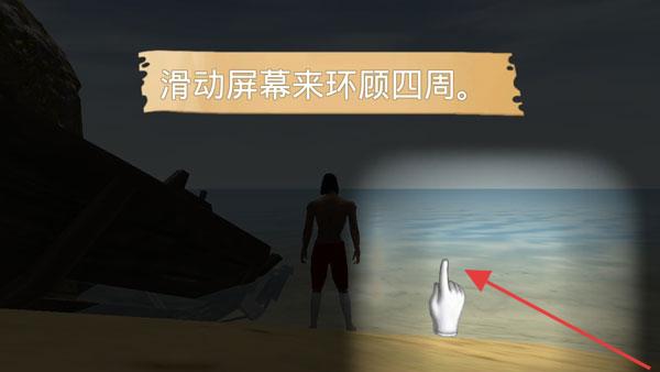 1、滑動屏幕任意區(qū)域,調(diào)整視角,觀察周邊環(huán)境(如海洋、沙灘),尋找資源點。