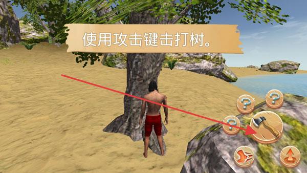 3、面對樹木,點擊右側(cè)攻擊鍵(斧頭圖標(biāo)),持續(xù)擊打獲取木材,用于制作工具。