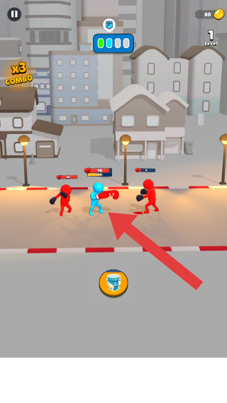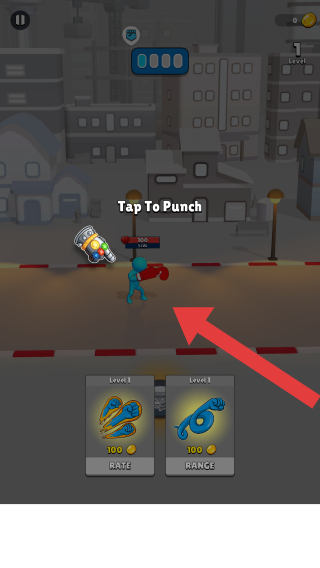 1、屬于動作格斗類,畫面呈現(xiàn)的是城市街道戰(zhàn)斗場景,有藍色拳擊角色、敵方目標,文字“TapToPunch”是玩法提示(點擊出拳)。