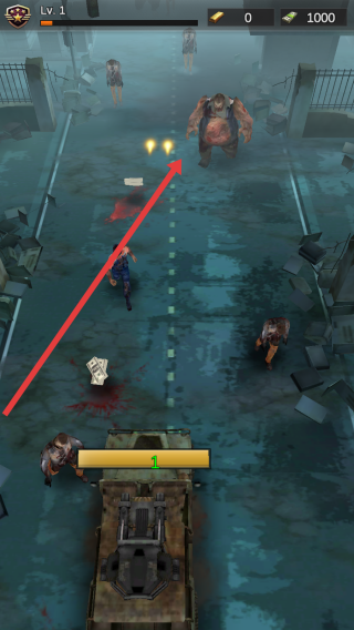 1、戰(zhàn)斗時,操控角色射擊箭頭指向的大型僵尸,優(yōu)先集火高威脅目標(biāo),清理道路上的普通僵尸。