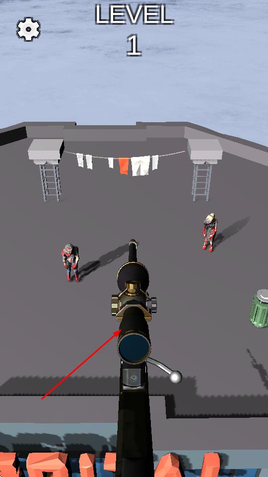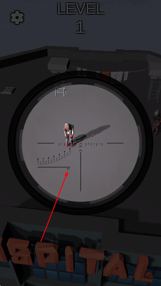 2、在狙擊場(chǎng)景中,滑動(dòng)屏幕調(diào)整瞄準(zhǔn)鏡視角,鎖定僵尸頭部點(diǎn)擊射擊鍵,同時(shí)留意是否有正常人類出現(xiàn)。