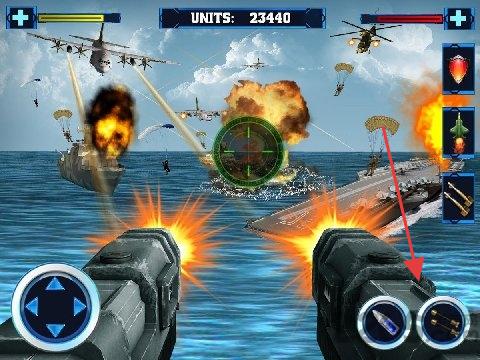 2、點(diǎn)擊右側(cè)武器圖標(biāo),切換武器(如導(dǎo)彈)打擊目標(biāo)。