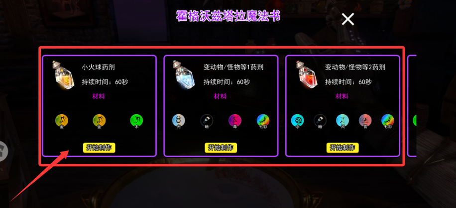 2、從古老配方書中挑選心儀藥水組合,按照步驟在坩堝中精心調(diào)配各類神奇藥劑。