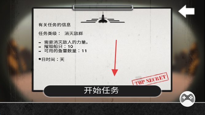 3、查看任務(wù)詳情(摧毀10艘艦船、可用11枚魚雷)后,點(diǎn)擊【開始任務(wù)】開啟戰(zhàn)斗。