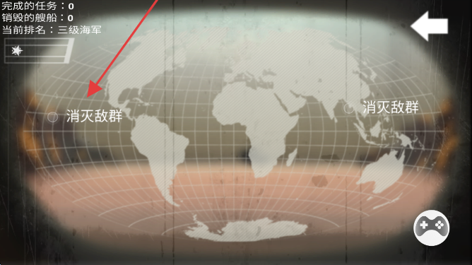 2、在世界地圖界面,選定【消滅敵群】任務(wù)目標(biāo)。
