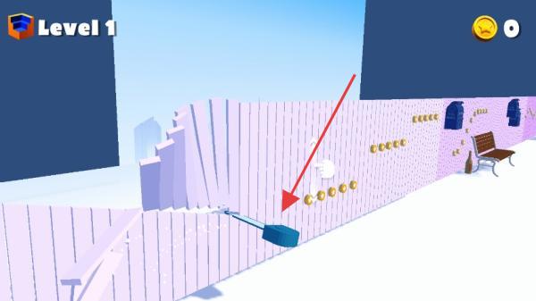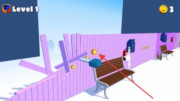 1、操控藍(lán)色工具破壞紫色圍欄,沿路徑收集金幣,注意避開(kāi)障礙,推進(jìn)關(guān)卡。