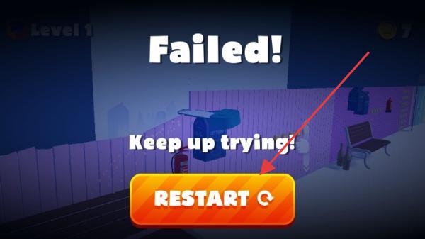 3、若顯示【Failed!】,點(diǎn)擊【RESTART】重新挑戰(zhàn),總結(jié)失敗原因,調(diào)整操作策略,再次嘗試通關(guān)。
