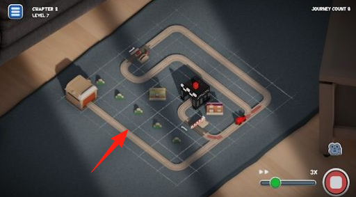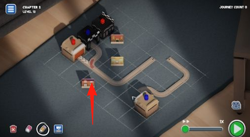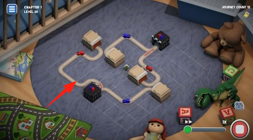 2、后續(xù)關(guān)卡(如CHAPTER1LEVEL13),規(guī)劃車輛行駛路線,點(diǎn)擊箭頭指向軌道段,調(diào)度車輛避障、???。