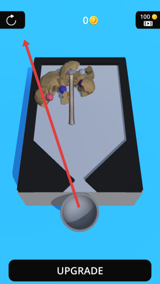 1、在操作臺上,按箭頭指引,將食材(如土豆)放入指定區(qū)域,準備合成或烹飪,點擊【UPGRADE】可升級設(shè)備。