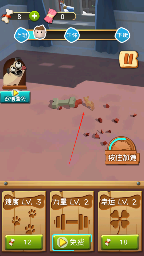 3、在主人回家前完成當前關(guān)卡的破壞任務(wù),獲取獎勵升級狗狗的拆家能力,解鎖新的狗狗和場景,體驗更具挑戰(zhàn)性的拆家過程,享受持續(xù)的解壓樂趣。