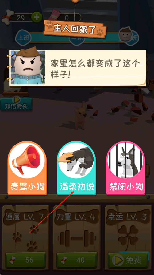 3、能力升級系統(tǒng):可通過任務(wù)獎勵升級狗狗的拆家能力,如提升破壞范圍、加快動作速度等,同時能解鎖豐富道具,助力更高效地完成破壞任務(wù),增強游戲深度。