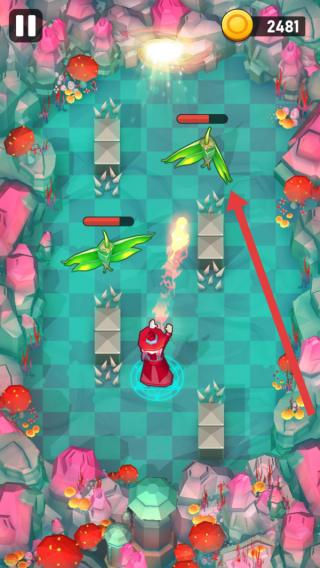 2、戰(zhàn)斗時,控制藍(lán)色角色,釋放紫色魔法,瞄準(zhǔn)箭頭指向的綠色敵人,清除障礙,推進(jìn)關(guān)卡。