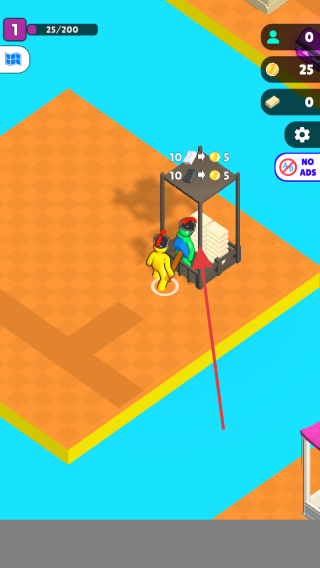 3、將材料運(yùn)送至交換點(diǎn),與綠色角色互動,兌換金幣(“25”)、經(jīng)驗(yàn),提升等級,解鎖新建造功能,完成資源循環(huán),升級基地。