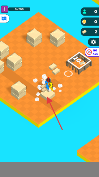 2、角色自動挖掘沙堆,獲取材料(如“2”木材),注意資源數(shù)量變化,清理沙堆,擴(kuò)大可建造區(qū)域,推進(jìn)進(jìn)度。