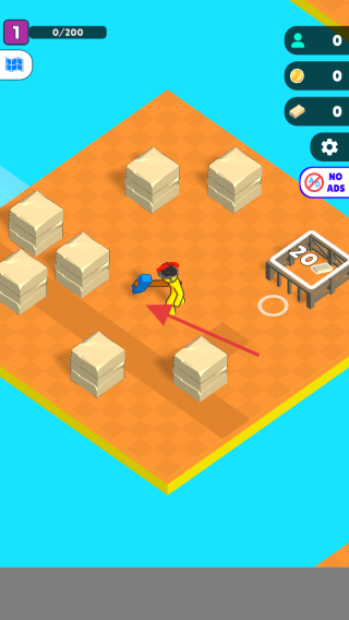 1、操控黃色角色,在沙漠場景移動,靠近沙堆(箭頭指向),準(zhǔn)備采集資源,積累材料,完成“0/200”基礎(chǔ)任務(wù)。