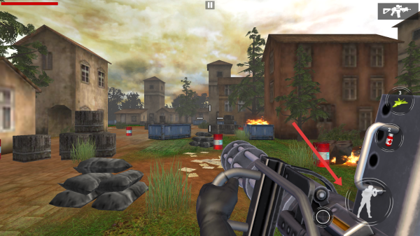 3、戰(zhàn)斗操作:持機(jī)槍,點射擊鍵攻擊,用戰(zhàn)術(shù)動作(如右側(cè)人形圖標(biāo)),在戰(zhàn)場(城鎮(zhèn))清敵。