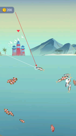 3、魚咬鉤后,把控收線節(jié)奏,用獲得的金幣解鎖漁具、升級技能,探索新釣魚點推進劇情。
