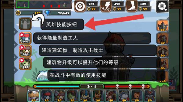 3、戰(zhàn)斗中,合理使用技能(如制造工人、升級(jí)建筑),按箭頭指引操作,抵御敵人,完成“3-4”波次挑戰(zhàn)。