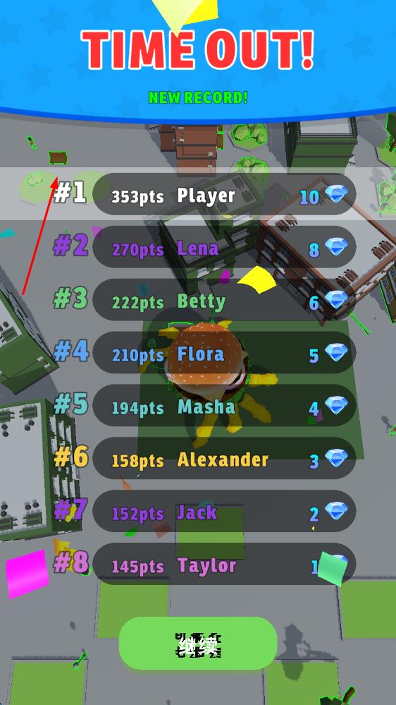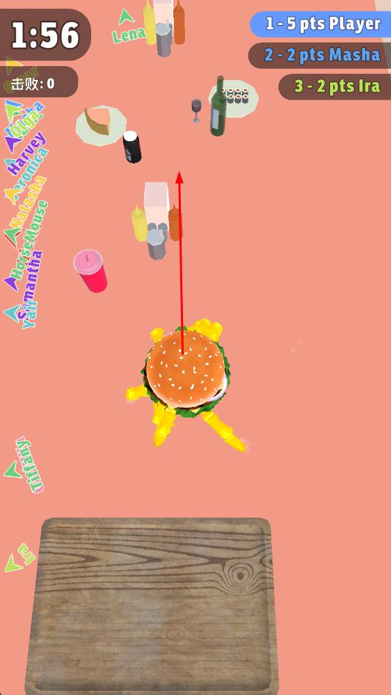 3、當(dāng)漢堡包進(jìn)化到足夠大,超越其他競爭者且成功避開所有怪物威脅,即可達(dá)成逃離世界的目標(biāo),解鎖新的競技場挑戰(zhàn)。