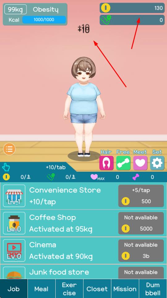 2、兼職賺錢解鎖內(nèi)容:支持兼職工作賺錢,通過賺錢可能解鎖更多健身資源或劇情內(nèi)容,讓減肥過程與生活元素結(jié)合,增加模擬的真實(shí)性與可玩性,豐富游戲體驗(yàn)。